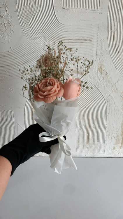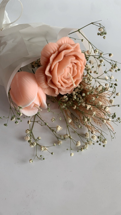 شمع گل جنس پارافین با گل های طبیعی