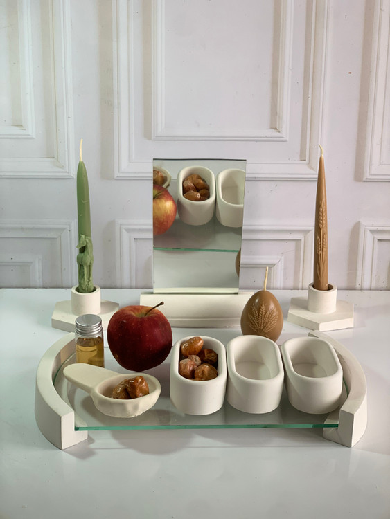 اندازه: طول سینی 30 سانت ، جنس ظرفها سنگی ، هفت سین کامل با آینه ارسال می شود