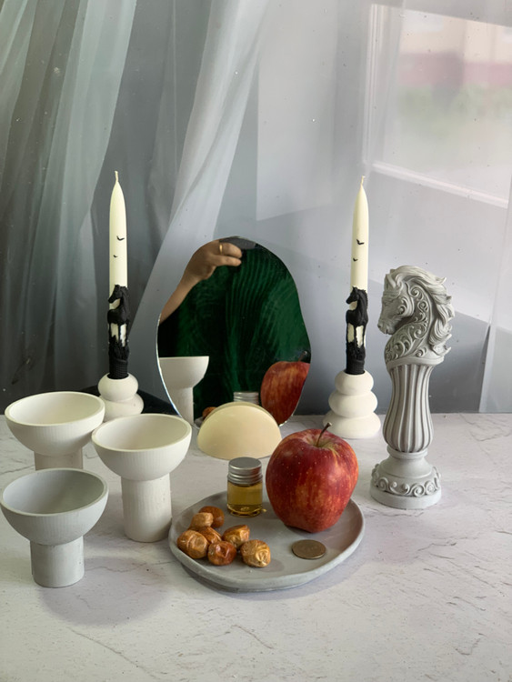 اندازه: شامل تمام آیتم ها ، 12 تکه ،شمع های قلمی و آینه و مجسمه اسب شامل هفت سین می باشد